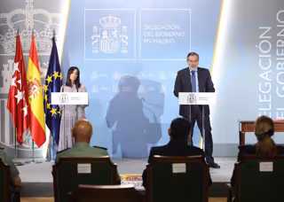 La delegada del Gobierno en Madrid, Mercedes González, y el consejero de Presidencia, Justicia e Interior de la Comunidad de Madrid, Enrique López, responden a los medios tras la firma de un convenio para mejorar la integración de la Comunidad de Madrid - Eduardo Parra - Europa Press