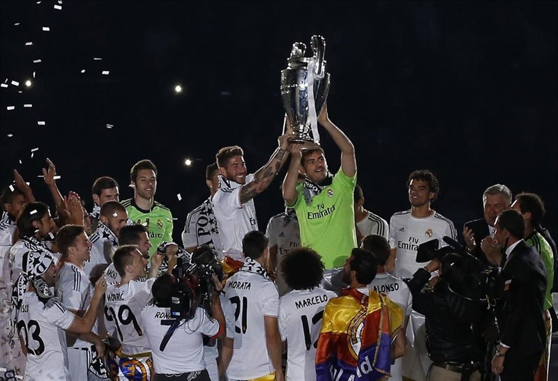 El Real Madrid culminó la fiesta de la décima Copa de Europa, conquistada el sábado en Lisboa ante el Atlético, con una celebración por todo lo alto en un Santiago Bernabéu engalanado para la ocasión y prácticamente lleno, donde los jugadores fueron los auténticos protagonistas y Casillas, Ramos y Ancelotti los más aclamados.