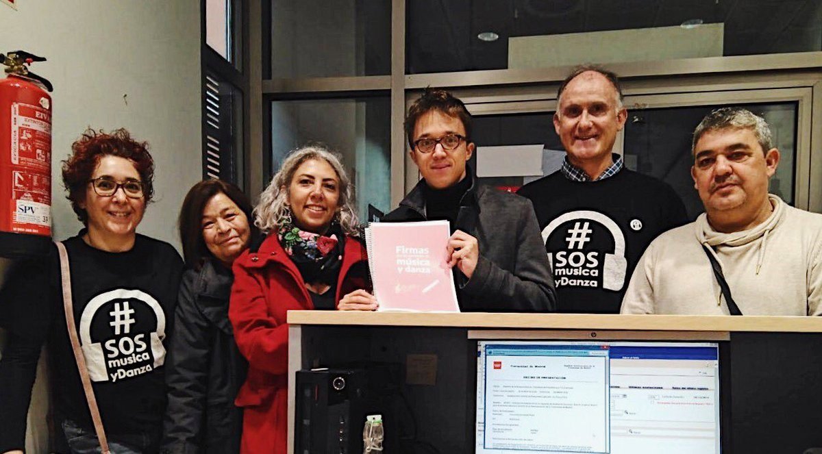 Errejón ha escrito en su cuenta de Twitter que acompañan a este colectivo a entregar estas firmas para que la Comunidad "les devuelva la financiación que les ha arrebatado". "Hay que dejar de competir por abajo de n cultura y cuidar nuestro patrimonio cultural", ha pedido.