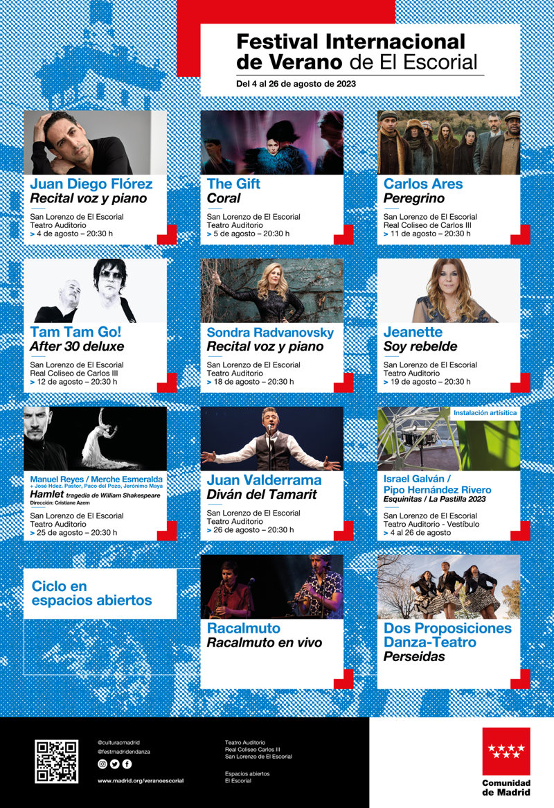 La Comunidad de Madrid celebrará la III edición del Festival Internacional de Verano de El Escorial (FIVE), entre el 4 y el 26 de agosto, con una programación que incluye diez espectáculos de música lírica, pop, folk, flamenco, danza o arte contemporáneo, con nombres como Juan Diego Flórez, Sondra Radvanovsky, Jeanette, Juan Valderrama o The Gift.