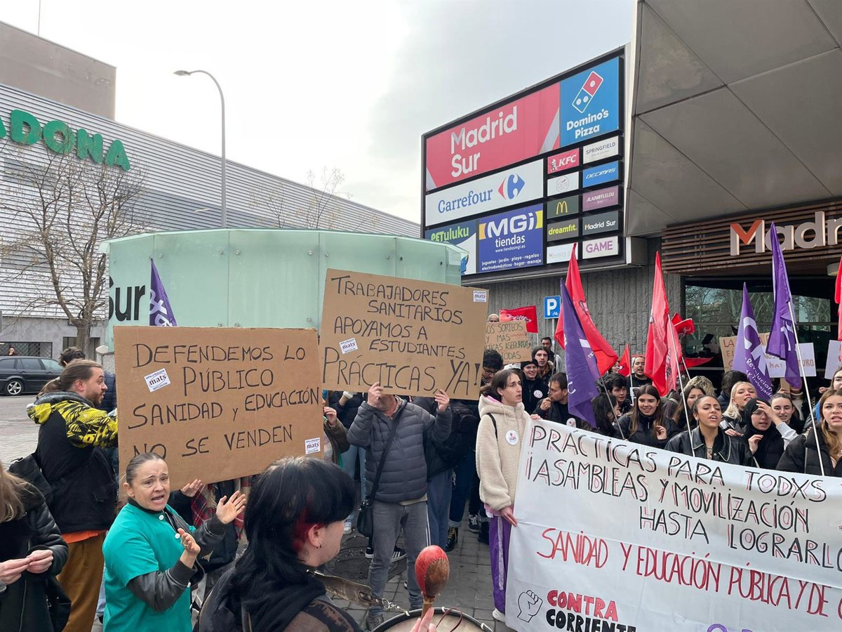 Por segunda vez esta semana, los estudiantes de la rama sanitaria de la Formación Profesional de varios centros públicos de la Comunidad de Madrid se han movilizado frente a la Asamblea de Madrid para exigir el acceso a prácticas que les permitan finalizar sus estudios reglados y poder titular.