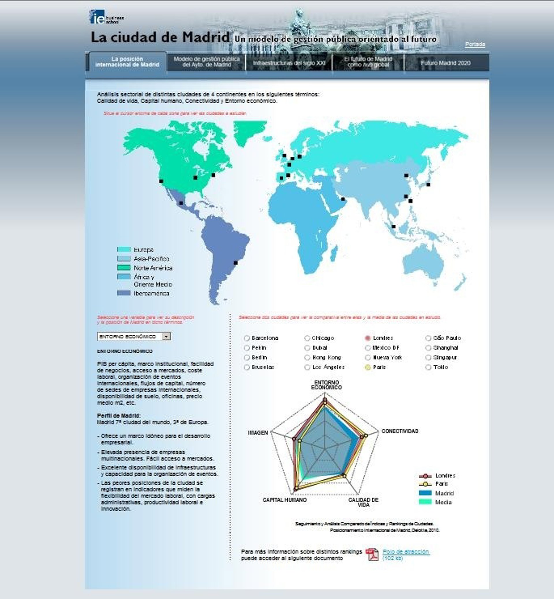 Además, la web incluye también el informe 'Futuro de la Ciudad de Madrid 2020', coordinado por el economista Emilio Ontiveros, a quien también se ha entrevistado para este proyecto.