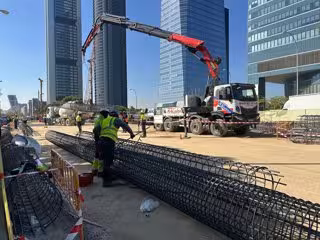 La obra cuenta con un personal de más de 90 personas y 28 unidades de maquinaria y vehículos (cuatro piloteras, tres grúas, cuatro retroexcavadoras, cuatro máquinas mixtas, dos máquinas giratorias, tres camiones bañera, cuatro camiones grúa, dos dúmper, un toro y una barredora).