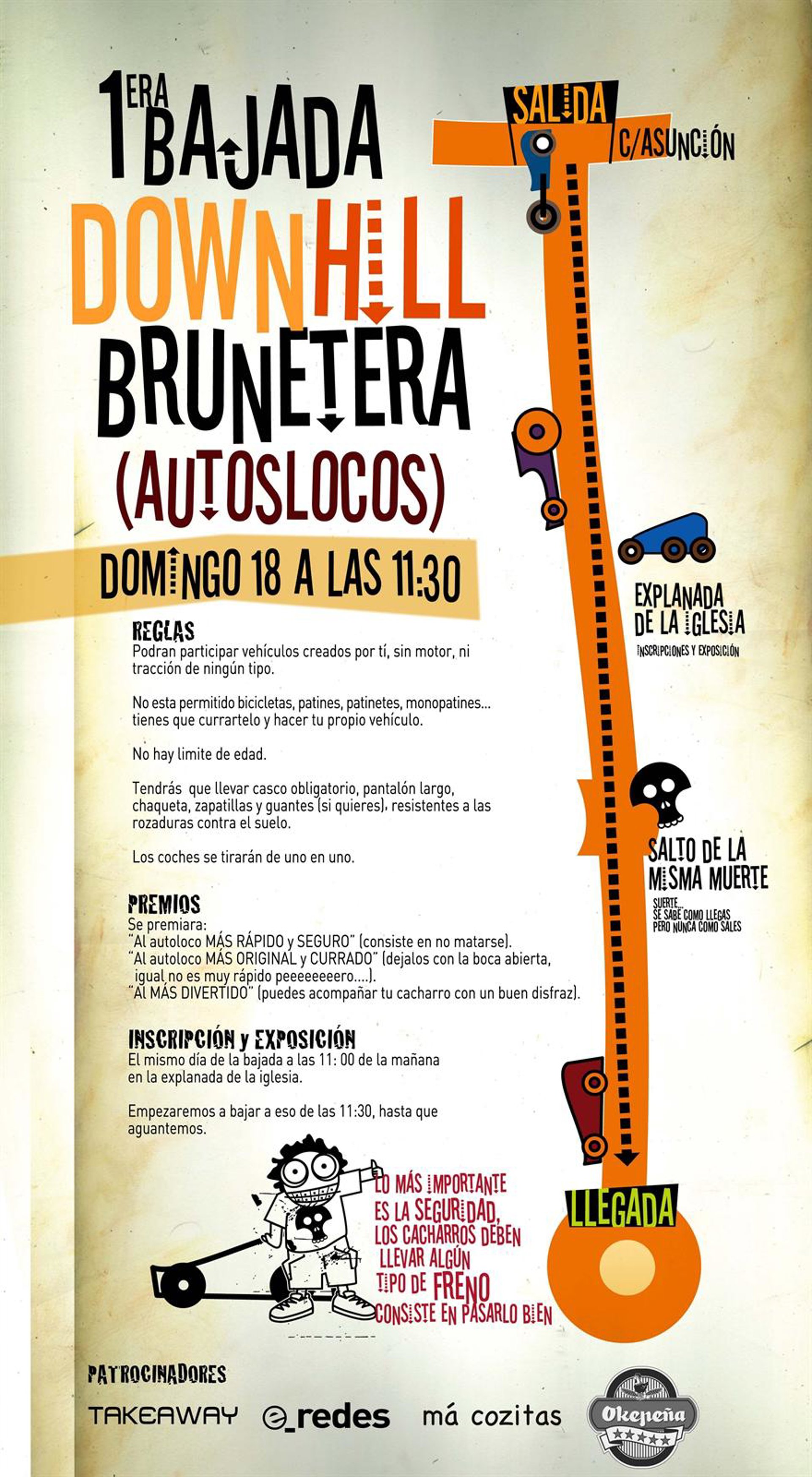 Mañana domingo día 18 de septiembre, desde las 11.30 horas, y con motivo de las Fiestas Patronales del municipio, tendrá lugar por primera vez en Brunete una espectacular y divertida prueba deportiva, la "Bajada Down Hill Brunetera" más conocida como los 'autos locos', ha informado el Ayuntamiento en un comunicado.