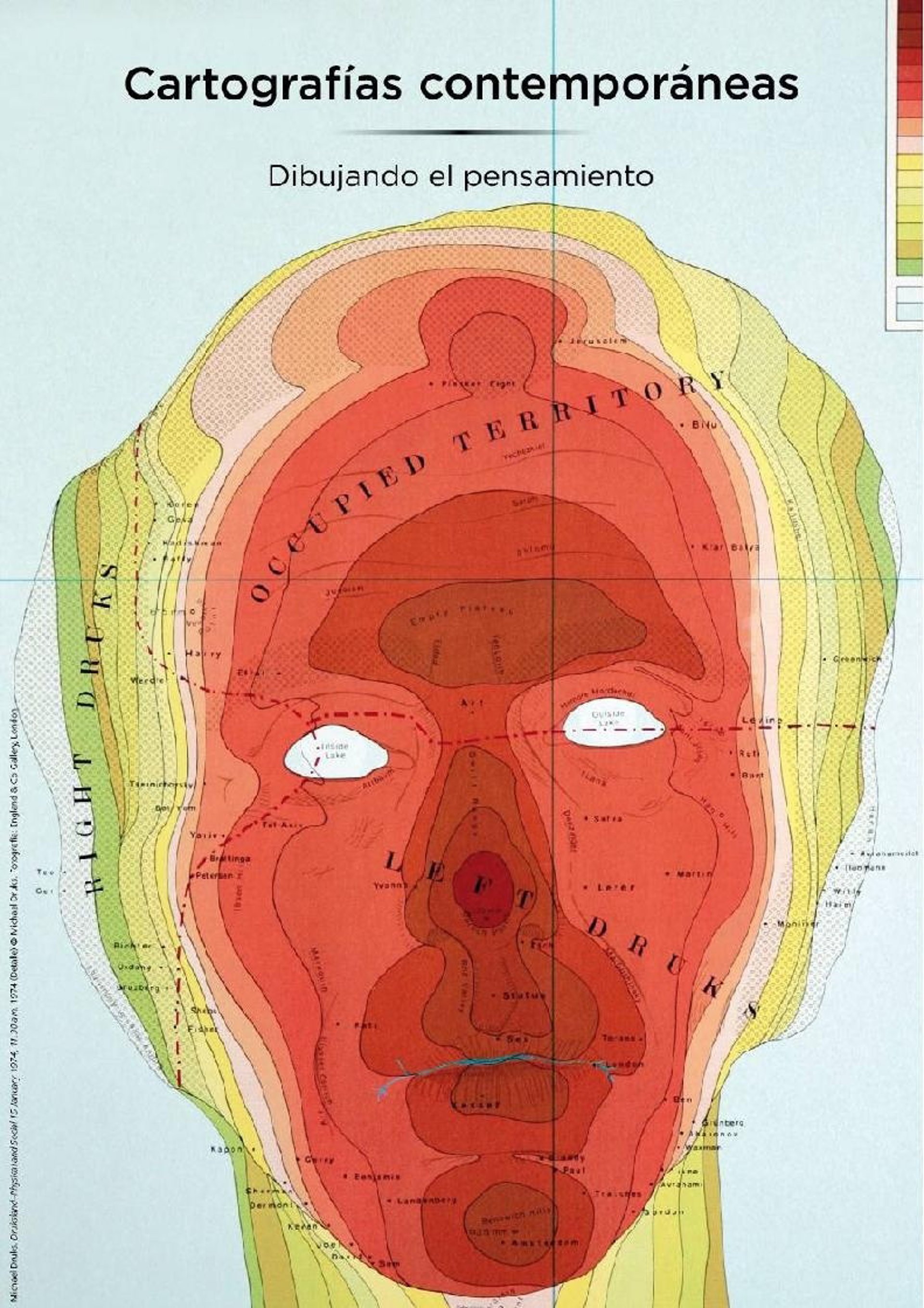 Una amplia representación de artistas actuales que han subvertido el lenguaje cartográfico, como Art & Language, Artur Barrio, Carolee Schneemann, Ana Mendieta, Erick Beltrán, On Kawara, Alighiero Boetti, Thomas Hirschhorn y Francis Alys junto a documentos reveladores de figuras de otros campos como Santiago Ramón y Cajal, Lewis Carroll y Carl Gustav Jung.