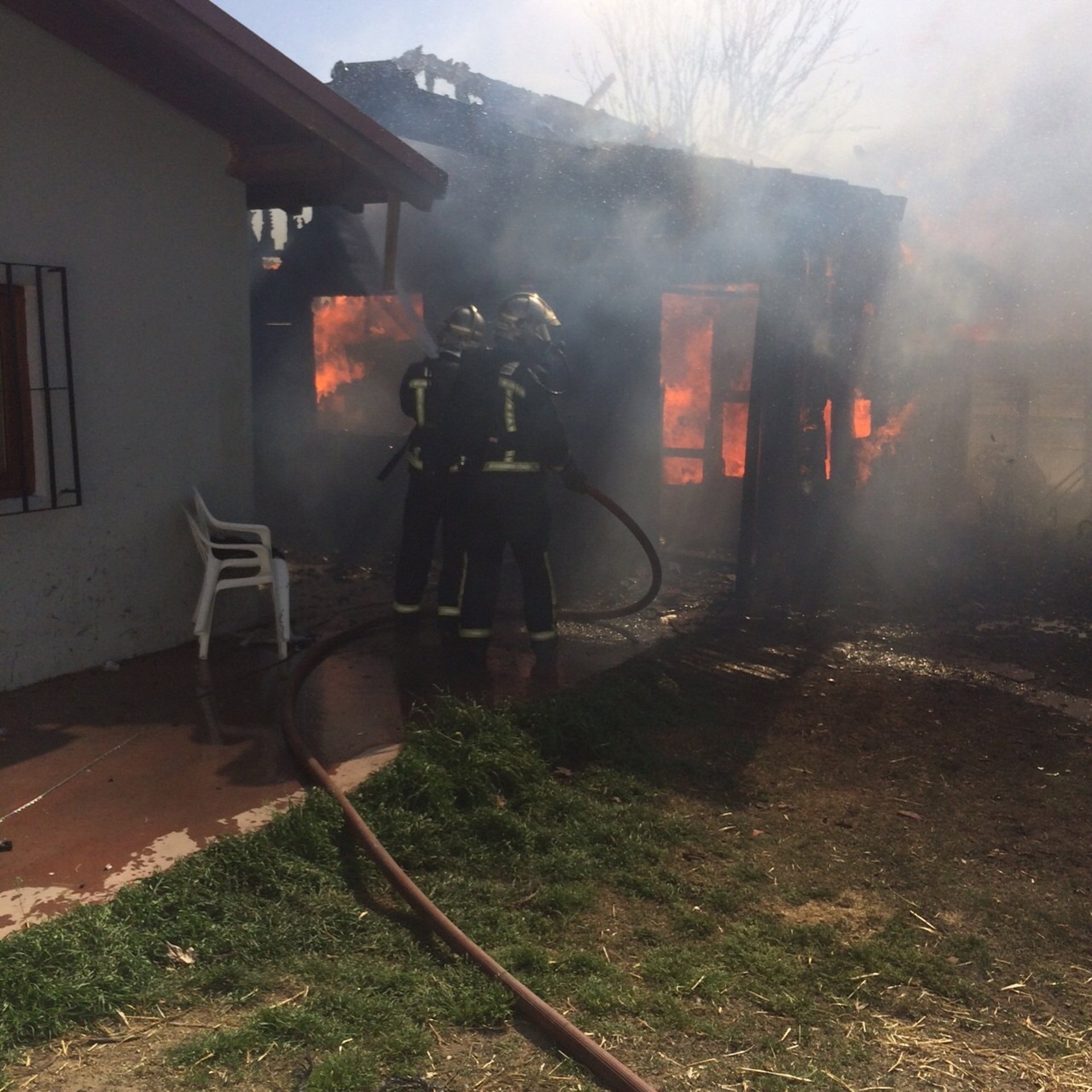Cuando llegaron los bomberos, el fuego estaba muy extendido en la vivienda afectada, que tiene 64 metros cuadrados en una sola planta. Se ha visto afectada la casa y los bomberos han evitado la propagación a viviendas cercanas y a la cuadra en la que viven 80 caballos.