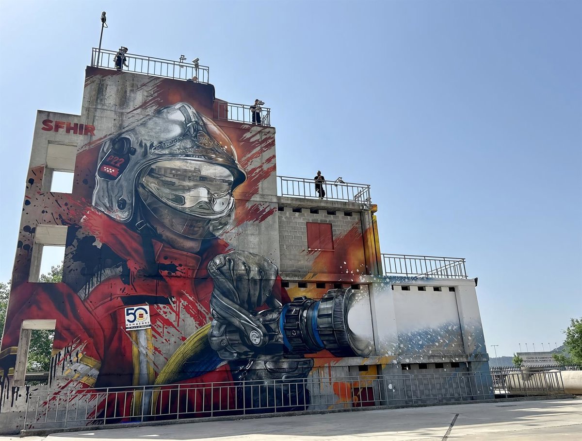 La obra conmemorativa del 50º aniversario del Parque de Bomberos de Alcalá de Henares, que decora la fachada norte de la torre de prácticas de esta infraestructura pública regional ha sido nominada finalista al Mejor Mural del Mundo (Best Mural of the World 2025).