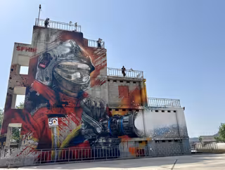 Mural de Shfir en el Parque de Bomberos de Alcalá de Henares - COMUNIDAD DE MADRID