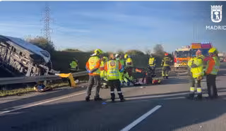 Bomberos del Ayuntamiento de Madrid se trasladaron al lugar de los hechos y encontraron a los dos ocupantes de la furgoneta atrapados, uno inconsciente y otro consciente. Al primero, varón de 50 años, le extrajeron por la luna frontal y lo transfirieron a los sanitarios del Samur-Protección Civil y del Summa-112, que le realizaron maniobras de reanimación cardiopulmonar avanzada, pero finalmente solo pudieron confirmar su fallecimiento.