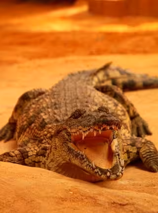 Esta instalación recrea un típico manglar africano, con zonas húmedas y boscosas cercanas al mar con arenales donde los cocodrilos del Nilo cazan sus presas y entierran sus puestas de huevos.