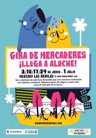 La feria 'Gira de Mercaderes' se ha inaugurado este sábado en Aluche para apoyar a emprendedores y al comercio tradicional y que durará hasta el próximo 1 de julio; convirtiendo el mercado Las Águilas cada sábado del mes en el epicentro de la moda y la gastronomía.