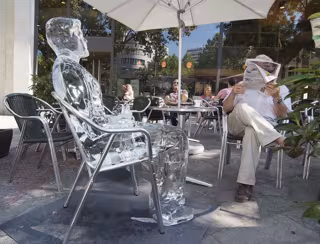 Las figuras de hielo, que representan a diferentes personas con el perfil de un enfermo de melanoma -hombres y mujeres de entre 40 y 55 años- simbolizan en su proceso de derretimiento veinte vidas perdidas por causa de esta grave enfermedad cuyo principal factor de riesgo es la exposición al sol.