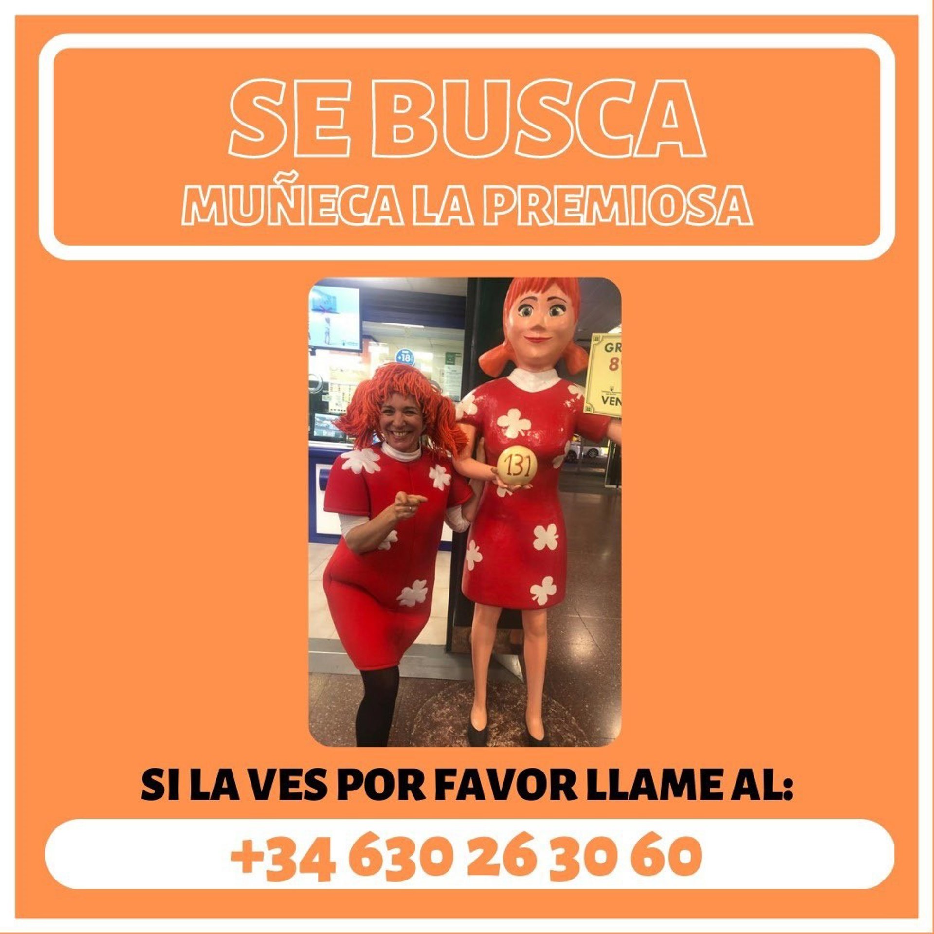 La administración de lotería de La Premiosa pide ayuda para encontrar a su muñeca sustraída. - LA PREMIOSA