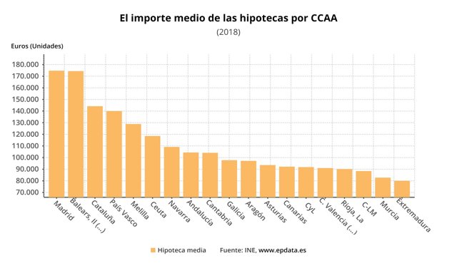Las comunidades en las que se prestó más capital para la constitución de hipotecas sobre viviendas en marzo fueron Madrid (1.409,6 millones de euros), Cataluña (1.022,9 millones) y Andalucía (797,8 millones de euros).