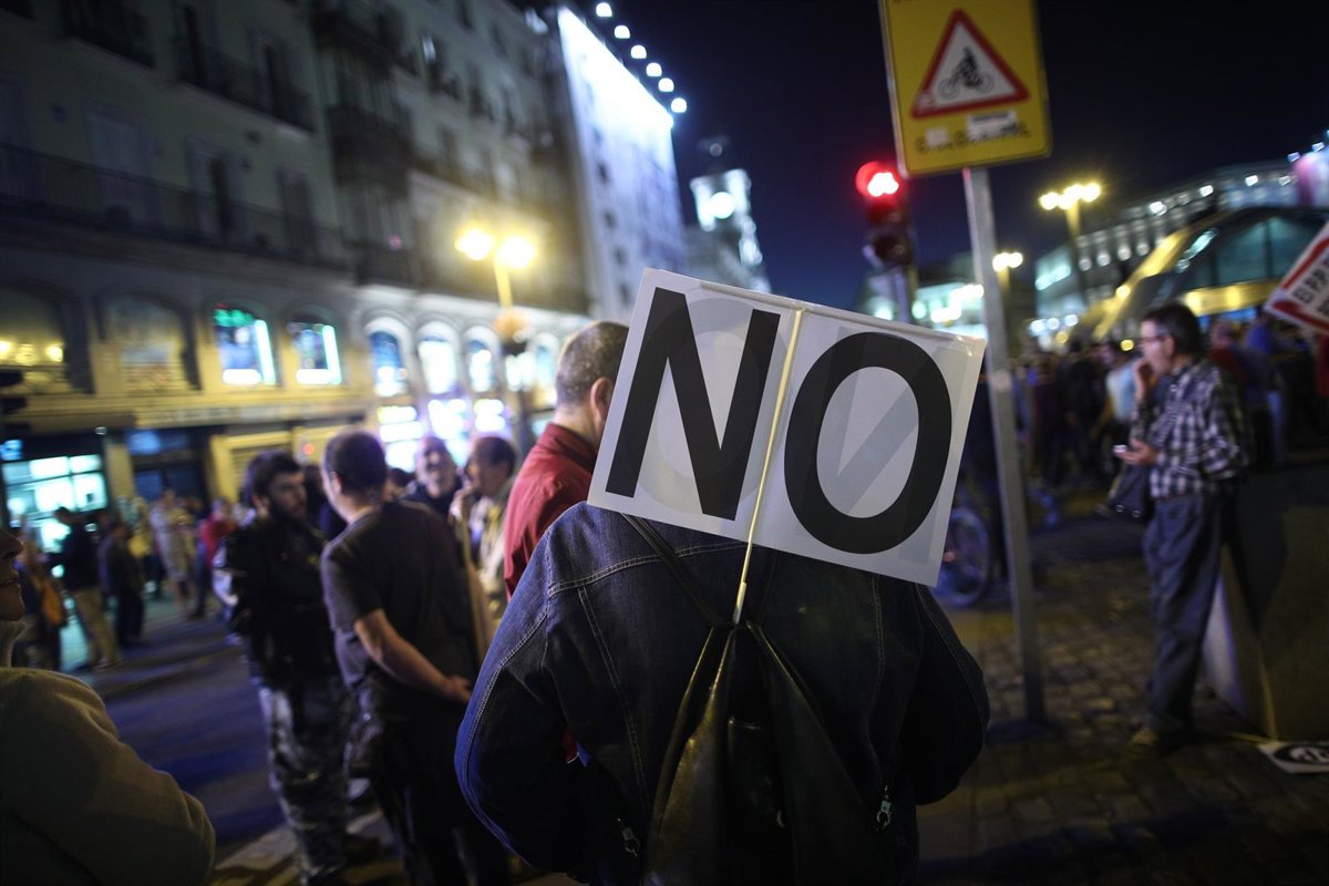 Según el relato inicial del fiscal, los encausados participaban en una concentración no autorizada bajo el lema 'Rodea el Congreso', que se desarrolló por el calles del centro de Madrid desde Neptuno hasta Sol, "donde se inició un lanzamiento de petardos y botellas".