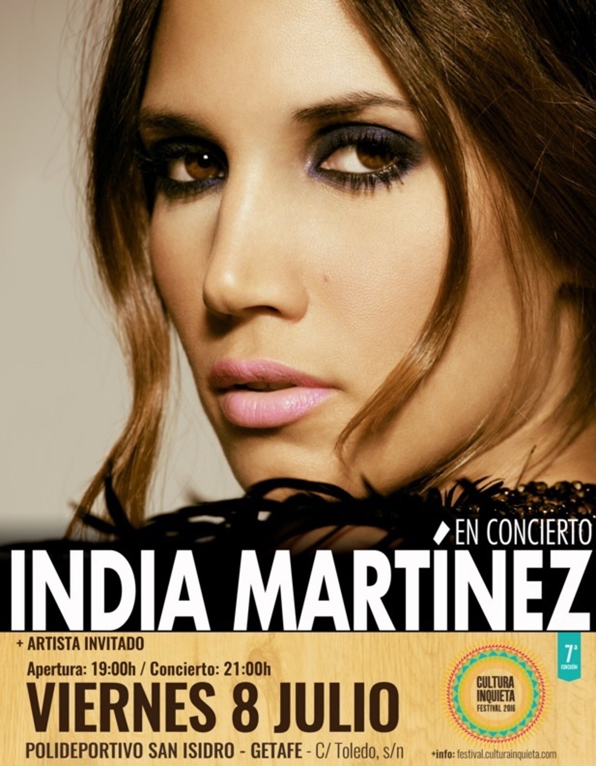 India Martínez compartirá festival con artistas ya confirmados como Fermín Muguruza (30 de junio), que reaparecerá en Madrid después de 12 años. También se han anunciado para el cartel de esta próxima séptima edición del Cultura Inquieta los nombres de Los Chikos del Maíz, Suite Soprano y Foyone (2 de julio), Ara Malikian (7 de julio), Muchachito y Juanito Makandé (9 de julio) y Juan Magán, Danny Romero, DCS, Víctor Magán, Krisha, CHK y DJ Will (15 de Julio).