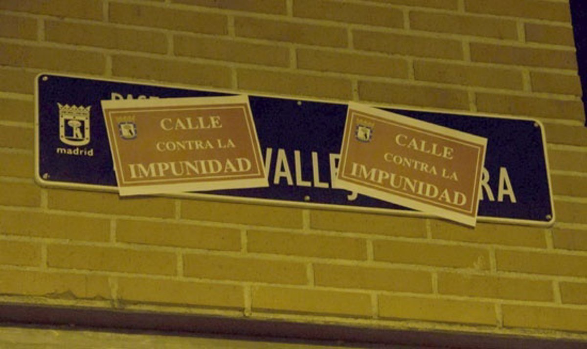 El Foro por la Memoria de la Comunidad de Madrid ha procedido en la madrugada de este lunes a cambiar las placas de la calle 'Doctor Vallejo Najera' por carteles con el nombre de 'Calle de la Impunidad' dentro de su campaña 'Limpia tus calles de Fascismo', al considerar que este caso es un ejemplo de simbología fascista en Madrid.