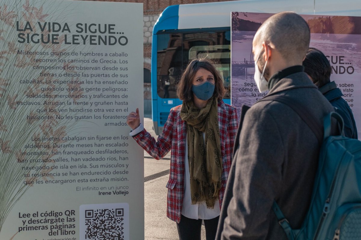 Las áreas de Medio Ambiente y Movilidad y de Cultura, Turismo y Deporte junto a la Empresa Municipal de Transportes (EMT) han presentado la campaña 'La vida sigue... sigue leyendo' para fomentar la lectura en el interior de los autobuses de la Empresa Municipal de Transportes (EMT) con hasta 15 títulos de muy diversos autores.