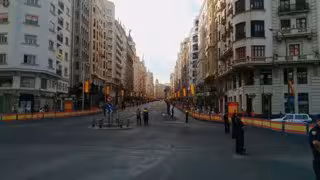 Los agentes de la Policía Nacional y Municipal forman casi una cadena humana en la Gran Vía, engalanada con banderas de España en farolas y balcones y con las tribunas de prensa listas para acoger a los periodistas, que ya están ocupando sus puestos. Sin embargo, apenas hay público en el recorrido.