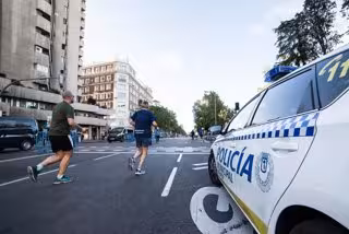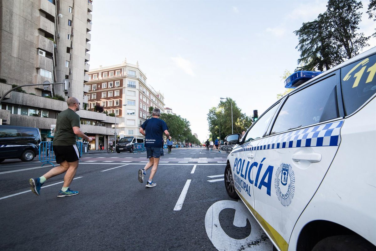 La Policía Municipal de Madrid vigila el cumplimiento de las normas por los transeúntes que caminan y hacen deporte por la calle Menéndez Pelayo de la capital. - Joaquin Corchero / Europa Press