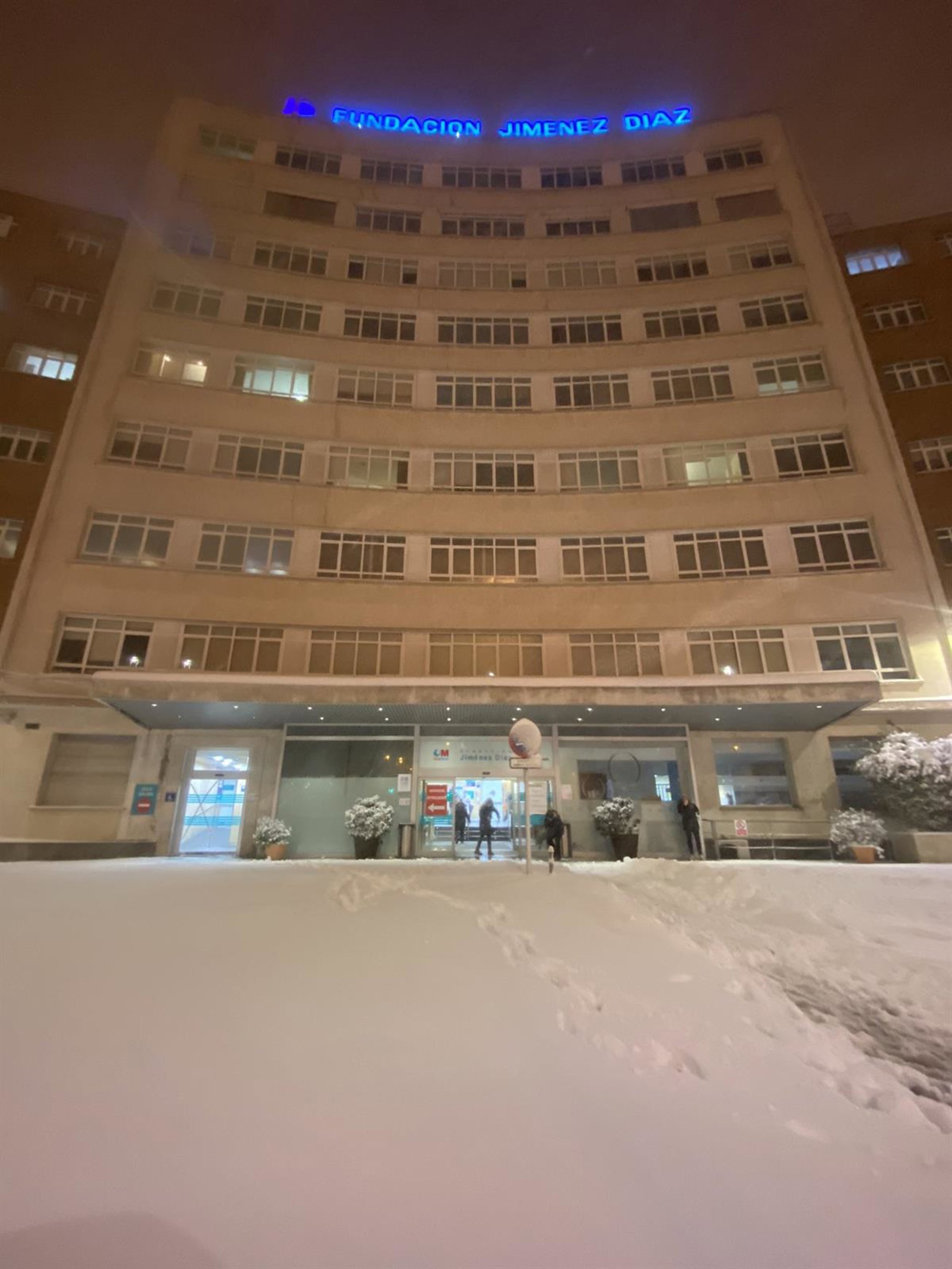 Entrada principal de la Fudación Jiménez Díaz nevada - FUNDACIÓN JIMÉNEZ DÍAZ