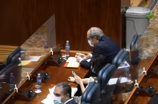 El portavoz del PSOE en la Asamblea de Madrid, Ángel Gabilondo, mira su móvil durante una sesión de control al Gobierno en Madrid (España), a 9 de julio de 2020. Entre otras cuestiones, el pleno debate una iniciativa de Vox para que Ayuso y sus consejer - Óscar Cañas - Europa Press - Archivo