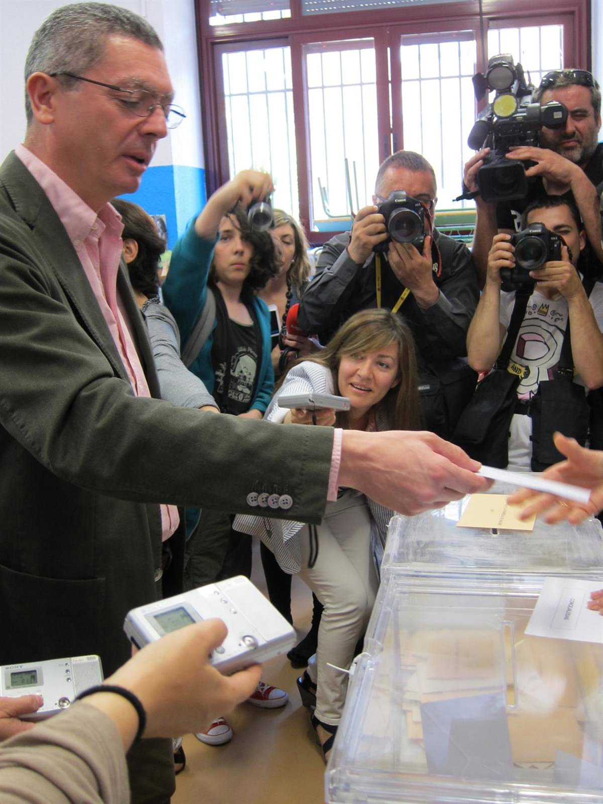 El alcalde de Madrid y candidato 'popular' a la reelección, Alberto Ruiz-Gallardón, ha acudido este domingo a votar al colegio Pi i Margall del distrito Centro acompañado por su mujer, Mar Utrera, y por tres de sus hijos.
