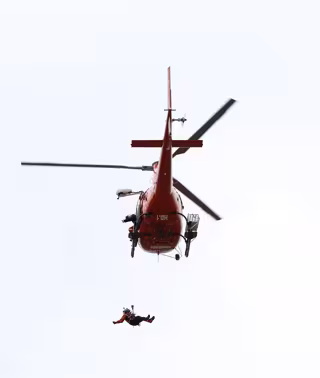 Archivo - Un miembro del GERA hace una demostración desde un helicóptero durante la celebración del XXV aniversario de la creación del Grupo Especial de Rescate en Altura (GERA), en el parque de bomberos de Navacerrada, a 16 de diciembre de 2022, en Navac - Marta Fernández Jara - Europa Press - Archivo