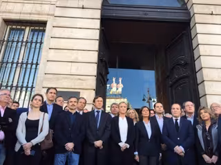 La presidenta de la Comunidad de Madrid, Cristina Cifuentes, la delegada del Gobierno en Madrid, Concepción Dancausa, todos los portavoces políticos en la Asamblea de Madrid y miembros del Gobierno regional han asistido este sábado a los cinco minutos de silencio convocados para condenar los atentados de París de la pasada noche y solidarizarse con las víctimas.