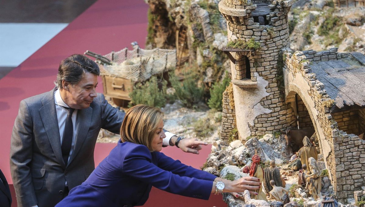El presidente de la Comunidad de Madrid, Ignacio González, ha visitado este martes con la presidenta de Castilla-La Mancha, María Dolores Cospedal, el tradicional Nacimiento de la Real Casa de Correos, sede del Gobierno regional, en la Puerta del Sol, que este año rinde tributo a El Greco y a la ciudad de Toledo, con motivo del IV centenario de la muerte del pintor cretense.