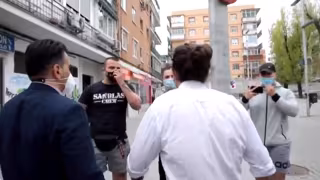Un grupo de cuatro personas de estética neonazi ha increpado esta tarde al líder de Podemos y candidato a la Presidencia de la Comunidad de Madrid, Pablo Iglesias, tras visitar a una asociación de vecinos en Coslada.