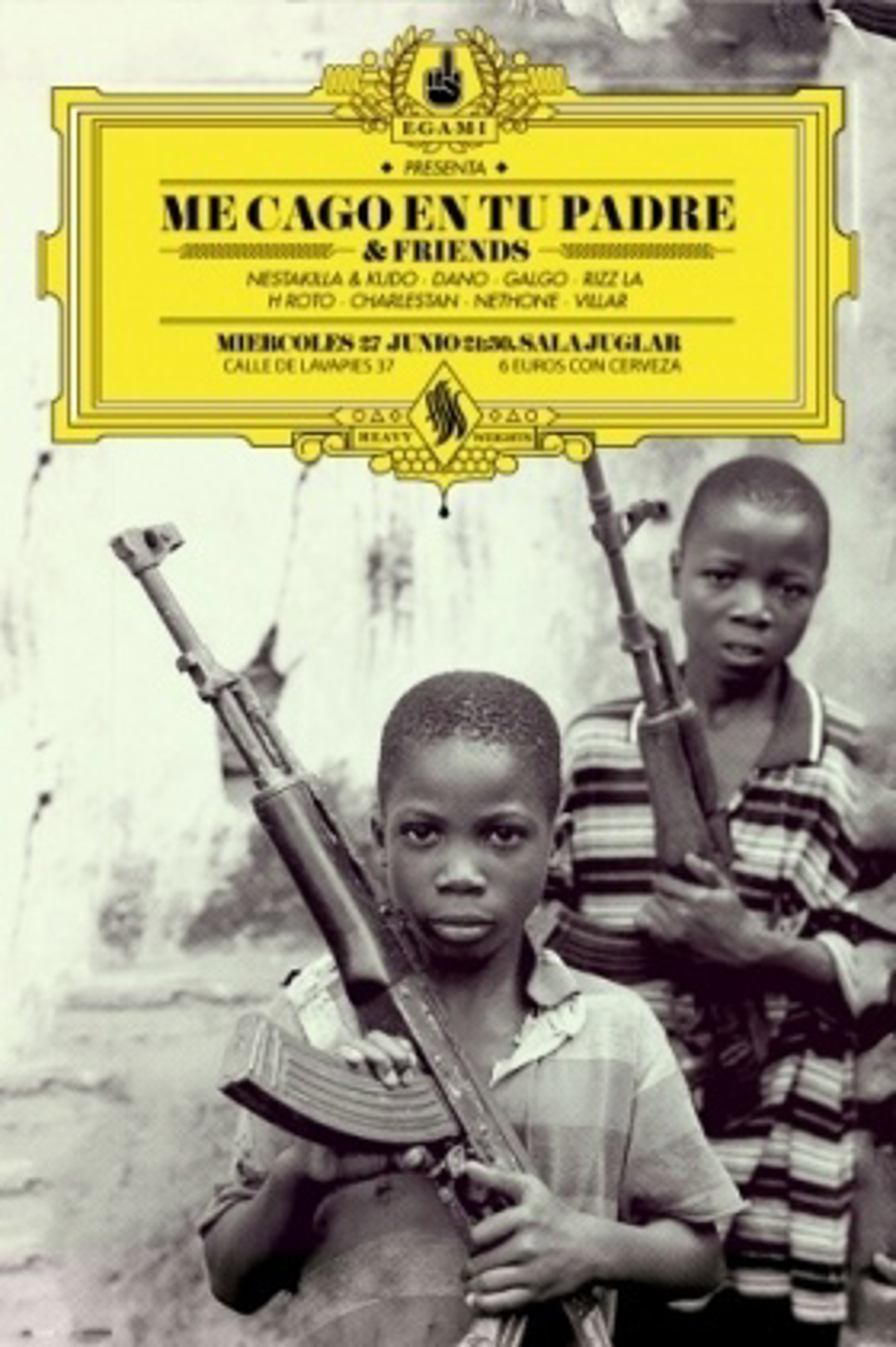 Según les anuncia la propia sala Juglar en su web, 'Me cago en tu padre' es "rap real producto cien por cien canario" cuyos dos integrantes, Niño Maldito y Cálido Lehamo, "después de una larga trayectoria como productores y Mcs, se unen para descargar toda su ira contra uno de los principales símbolos de la autoridad, el machismo, y la falta de razón".