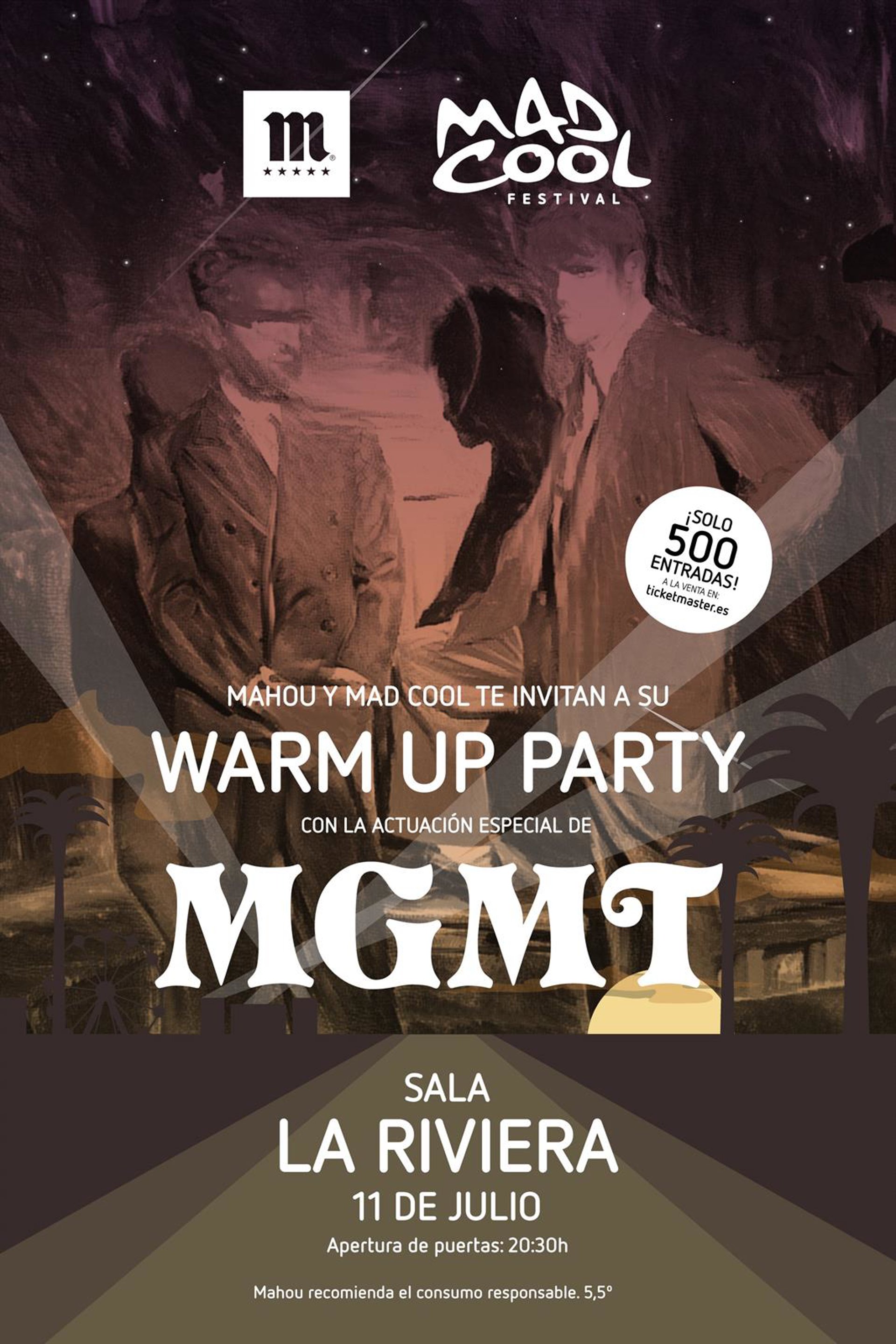 Mahou y el propio festival han invitado a su 'Warm Up Party' lanzando un cupo limitado de 500 entradas con un precio unitario de 20 euros más gastos. Las entradas han salido a la venta hoy miércoles a las 13:30 a través de Ticketmaster.