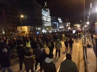 Los taxistas que estaban concentrados en la Puerta del Sol desde las 17 horas han comenzado su marcha hacia el Palacio de los Deportes en Goya, hacia la Calle Jorge Juan, donde la portavoz del PP en Madrid, Isabel Díaz Ayuso, y el portavoz del PP en el Ayuntamiento de Madrid, José Luis Martinez-Almeida, asisten a un acto en recuerdo del Holocausto.