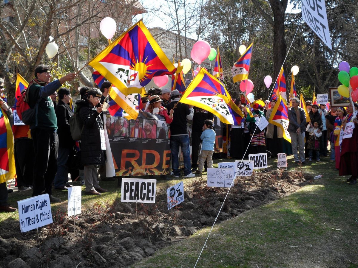 Unas 200 personas, la mayoría tibetanos o españoles de origen tibetano, se han concentrado este sábado ante la sede de la Embajada china en Madrid para exigir el fin de la represión que ejercen las autoridades chinas en Tíbet y pedir respeto a los Derechos Humanos y la cultura y la religión tibetanas. La concentración se ha realizado en el 53 aniversario de la invasión china de Tíbet.