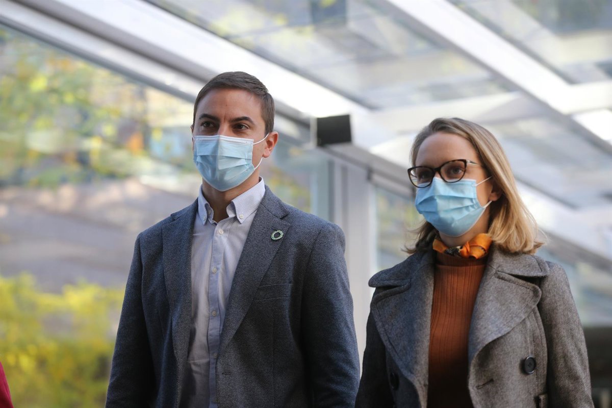 Archivo - El secretario general del PSOE-M y portavoz socialista en la Asamblea, Juan Lobato, y la portavoz de Unidas Podemos, Carolina Alonso, a su llegada al registro de la solicitud de reprobación de la presidenta de la Asamblea de Madrid, a 16 de no - Isabel Infantes - Europa Press - Archivo