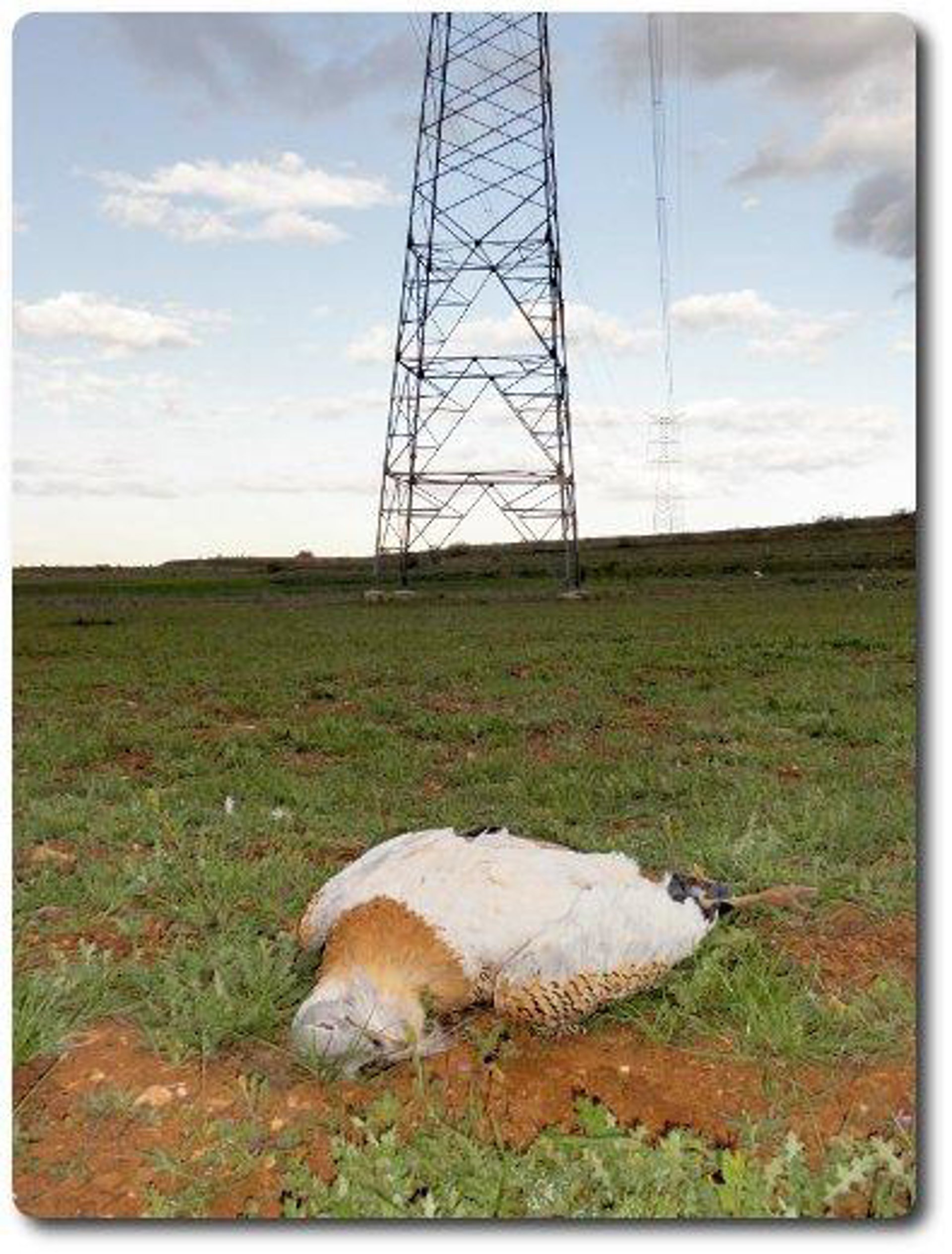 Hallan dos avutardas muertas tras golpearse con unos cables de alta tensión