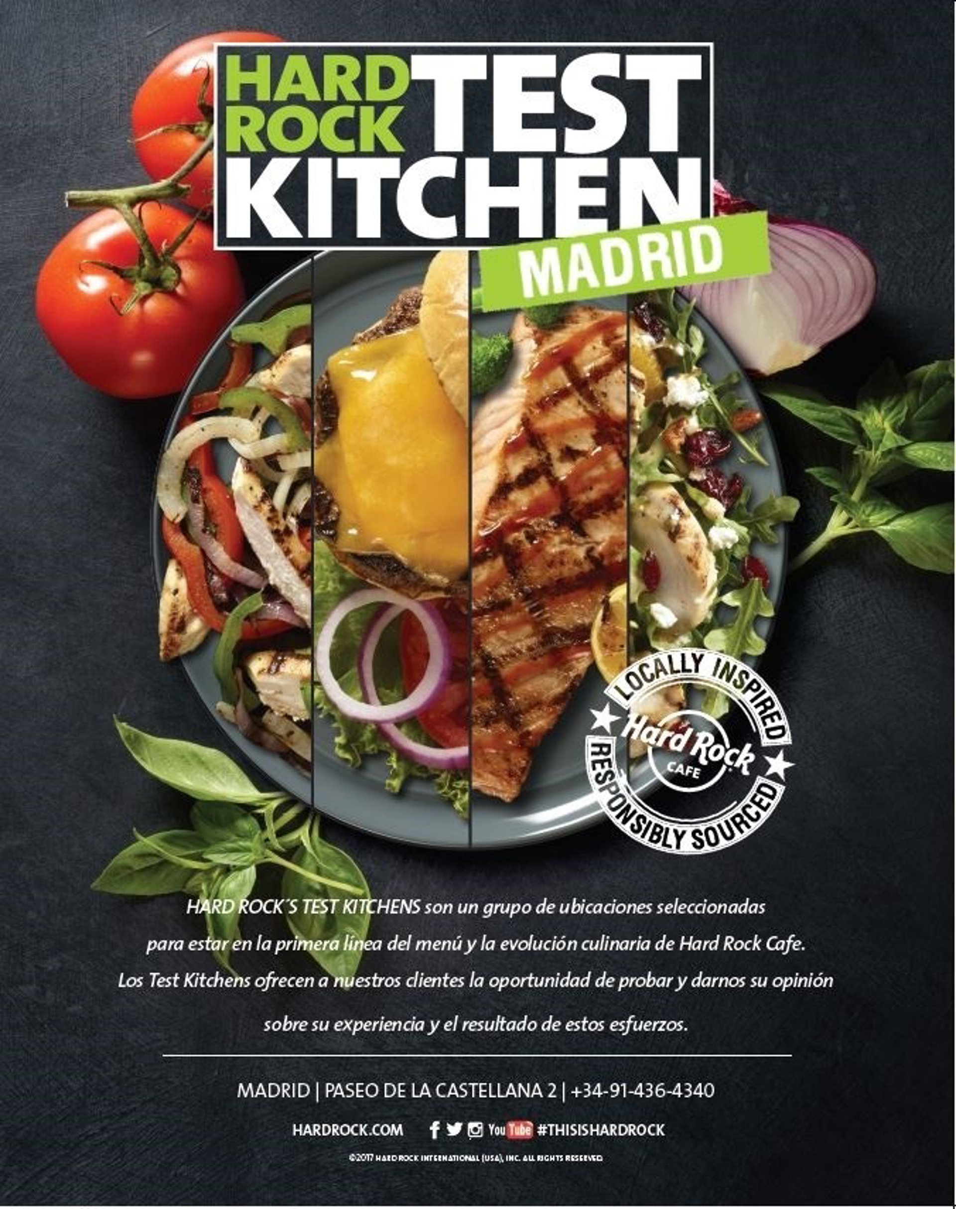 Hard Rock Cafe Madrid participará en el programa 'Test Kitchen' de Hard Rock Internacional y ofrecerá un nuevo menú con platos de inspiración local elaborados con ingredientes frescos de proveedores sostenibles.