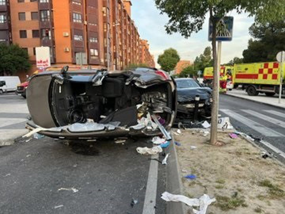 Los servicios de emergencias han recibido sobre las 6.40 horas de esta mañana un aviso alertando de un aparatoso vuelco en la calle Simca con Solara tras la colisión entre dos turismos.