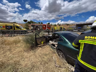 Bomberos de la Comunidad de Madrid han tenido que liberarle ya que había quedado atrapado en el vehículo. Investiga lo ocurrido Guardia Civil de Tráfico.