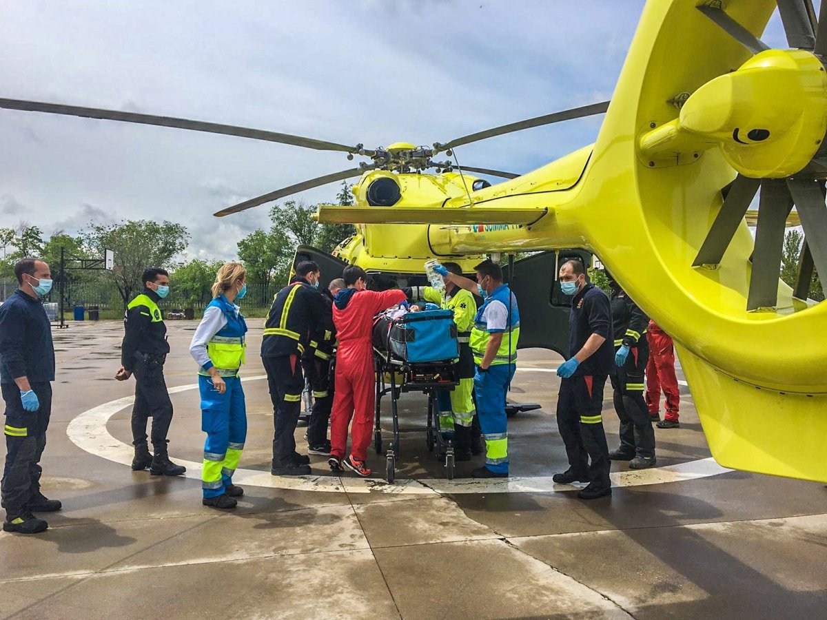 Hasta el lugar han acudido sanitarios del Summa-112, quienes han estabilizado y trasladado desde el parque de Bomberos de la Comunidad de Madrid intubado al herido en helicóptero al Hospital 12 de Octubre. Investigan los hechos la Policía Nacional y Local.