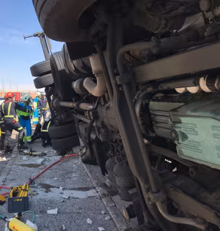 Por fortuna, la pluma del vehículo y parte de la carga han amortiguado la caída y han dejado un espacio de vida. En el lugar han intervenido también agentes de la Guardia Civil, Policía Local y Protección Civil. Los psicólogos del Summa han atendiendo a los compañeros del herido.