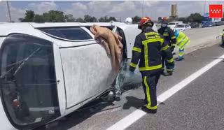 Hasta el lugar han acudido tres dotaciones de Bomberos de la Comunidad de Madrid y varios equipos de Summa-112, además de Policía Local y Guardia Civil. A la llegada de los efectivos, el conductor y único ocupante del turismo estaba ya fuera del mismo. Se trata de un varón de 64 años que presentaba un traumatismo craneoencefálico leve y varias heridas abiertas en mano y cabeza. Ha sido asistido por los sanitarios y trasladado en ambulancia al Hospital de La Paz.