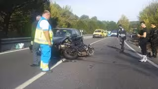 Un menor de 15 años ha tenido que ser trasladado al Hospital 12 de Octubre en estado grave tras un coche frontal entre la moto que viajaba el menor con su padre y un turismo en la M-501, a la altura del municipio de Navas del Rey.