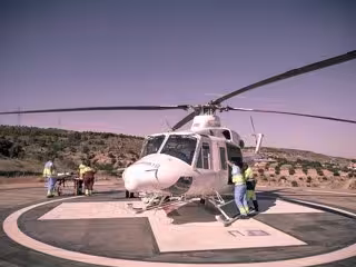 Los sanitarios le han estabilizado e intubado, para luego proceder a su traslado en un helicóptero del SUMMA 112 al Hospital 12 de Octubre, donde ha ingresado con pronóstico muy grave.