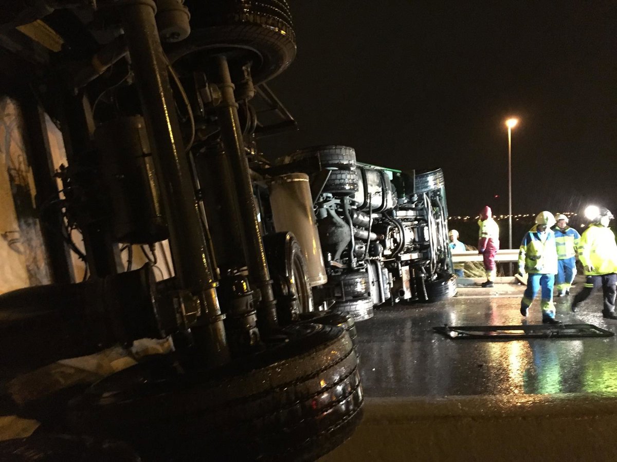 El accidente ha tenido lugar a las 3.30 horas de este lunes, en el kilómetro 24 de la M-506, KM 24 a la altura de Pinto. El conductor ha quedado atrapado en la cabina del camión, que transportaba 20 toneladas de cerveza.