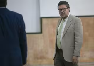 Reuniones de última hora en el Parlamento de Andalucía para tratar el Presupuesto de 2019. El presidente del Grupo Vox en el Parlamento de Andalucía, Francisco Serrano. - María José López - Europa Press