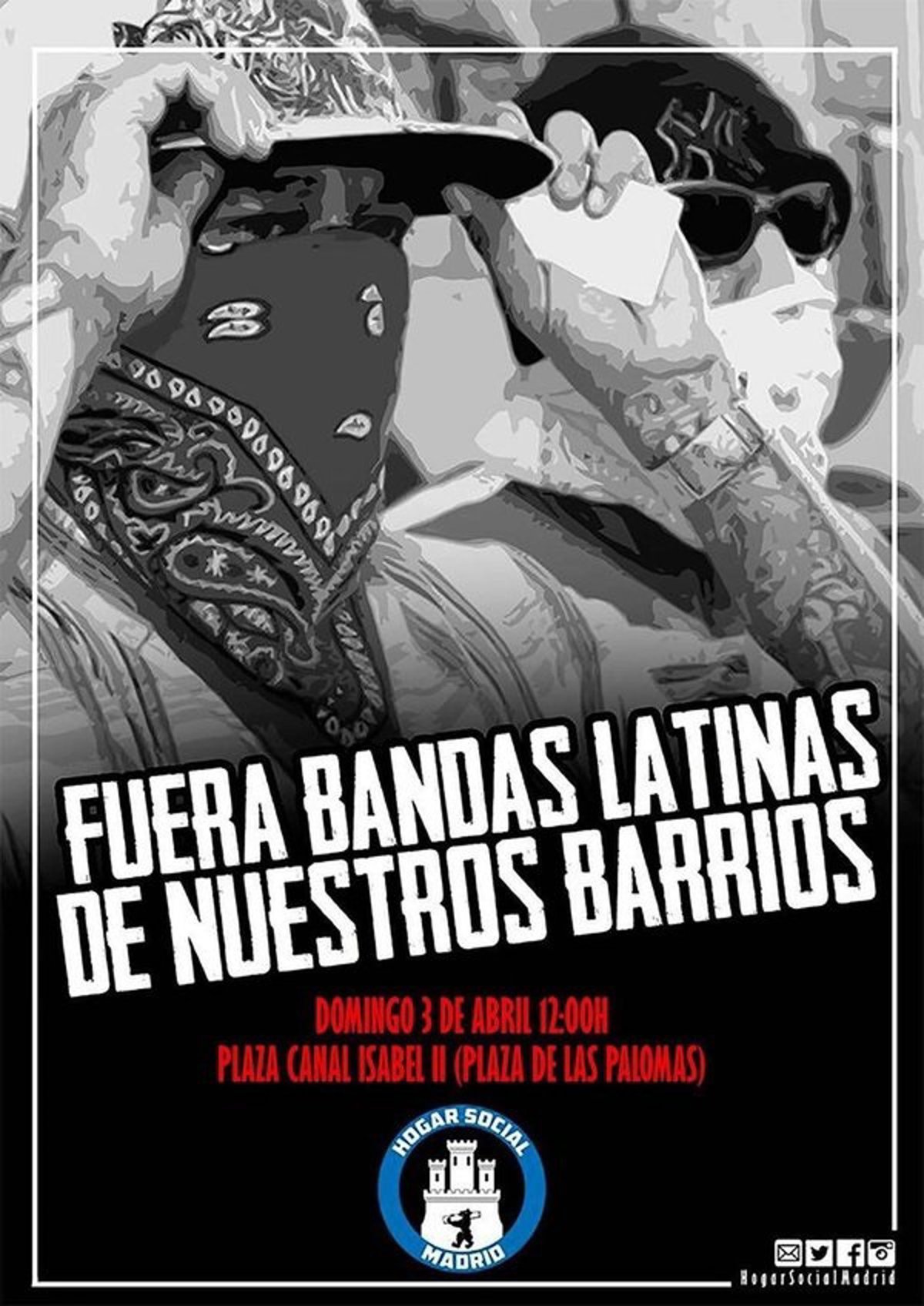 El Hogar Social Madrid ha convocado una manifestación hoy domingo contra las bandas latinas en la plaza del Canal de Isabel II, más conocida como plaza de las Palomas, en pleno centro de Tetuán, un barrio con gran número de población inmigrante de origen hispanoamericano.