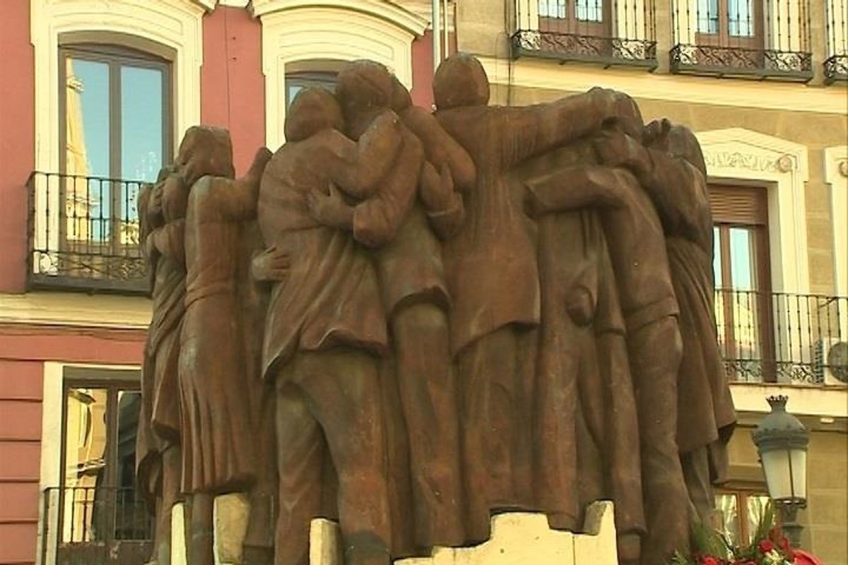 El suceso acabó con la vida de cuatro abogados y un sindicalista y dejó gravemente heridos a cuatro abogados más. Cinco personas a las que han rendido homenaje con un minuto de silencio y una ofrenda floral que han depositado junto a la estatua 'El Abrazo' del pintor y escultor Juan Genovés, en la plaza Antón Martín de la capital.