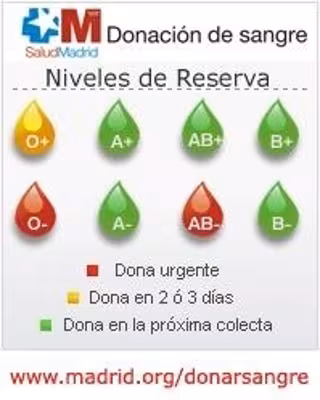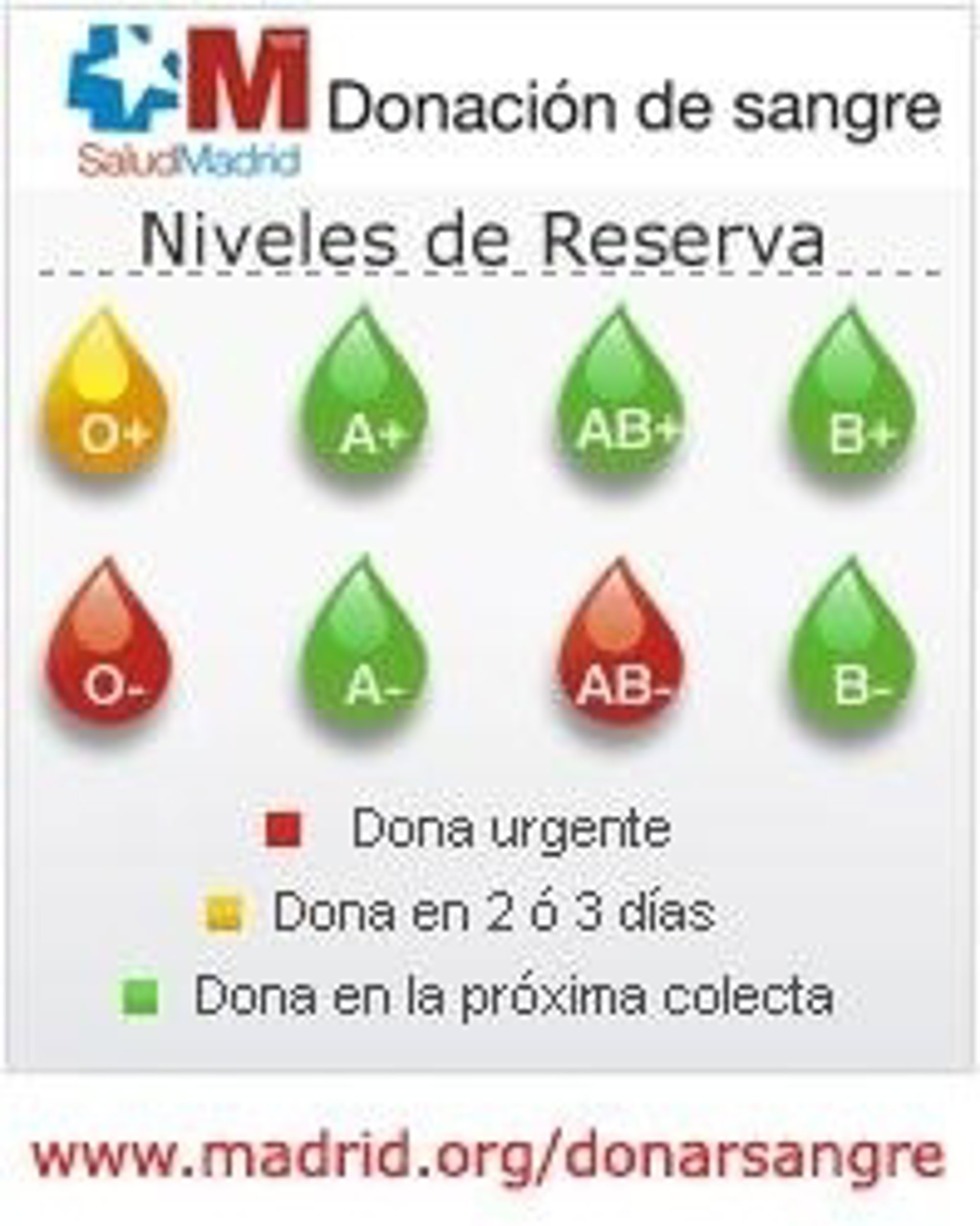 El Servicio Madrileño de Salud de la Comunidad de Madrid necesita con urgencia sangre de los grupos 0- y AB-, mientras que para el 0+ se reclama una donación para los próximos dos o tres días, ha informado el SERMAS este lunes en un comunicado.